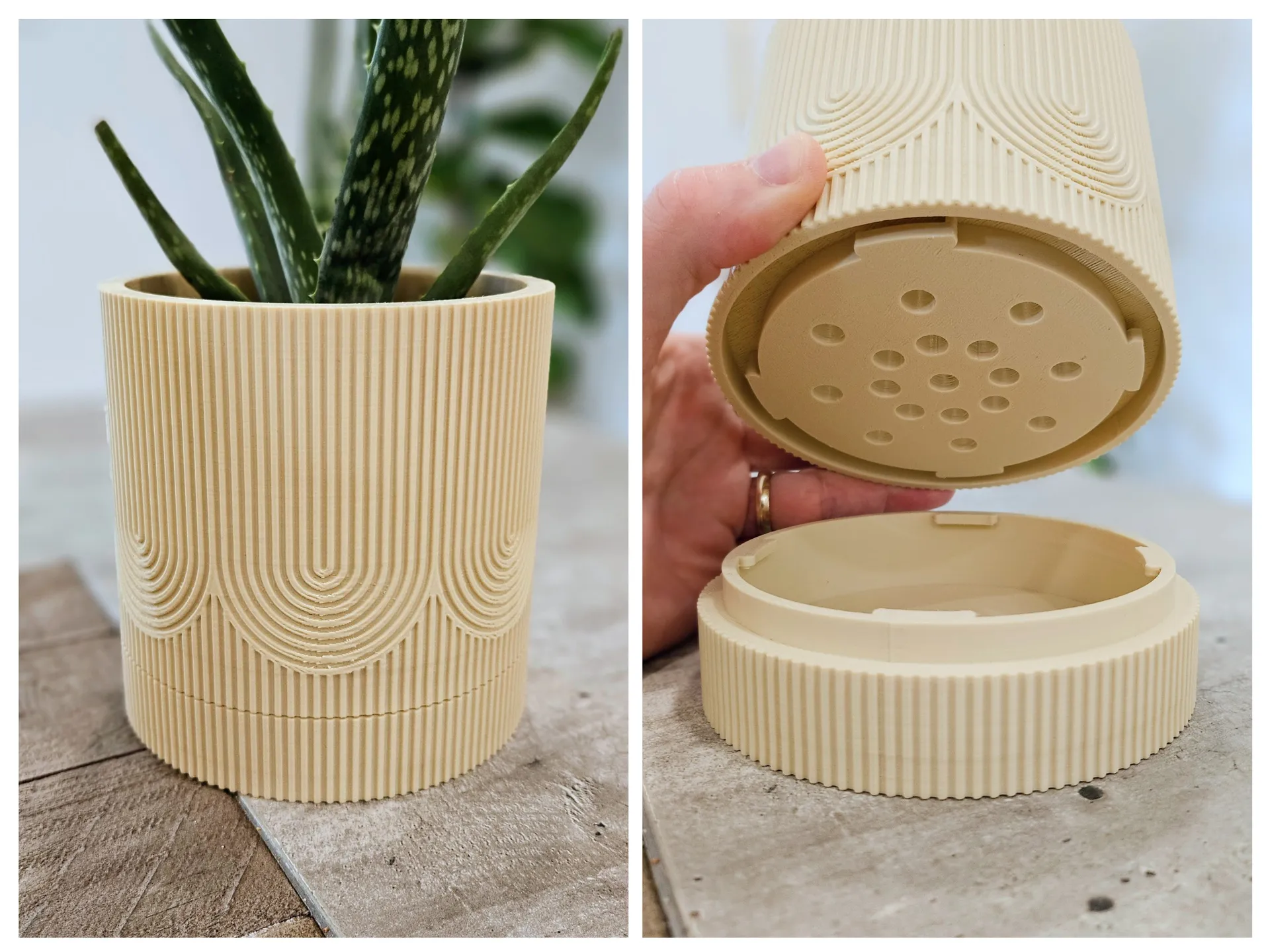 ¡Transforma tu hogar con un toque de modernidad y diseño! Este macetero impreso en 3D no es solo un objeto decorativo, es una declaración de estilo. Con su diseño circular intrincado y su color beige neutro, se adapta perfectamente a cualquier decoración, desde la más minimalista hasta la más vibrante.